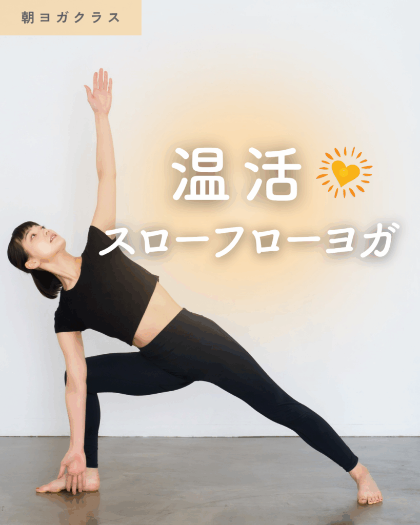 呼吸と動きを丁寧につなぐやさしいフローヨガレッスンです。丁寧に全身を伸ばしてから、フローの動きで内側から温め、体の巡りを上げていきます。