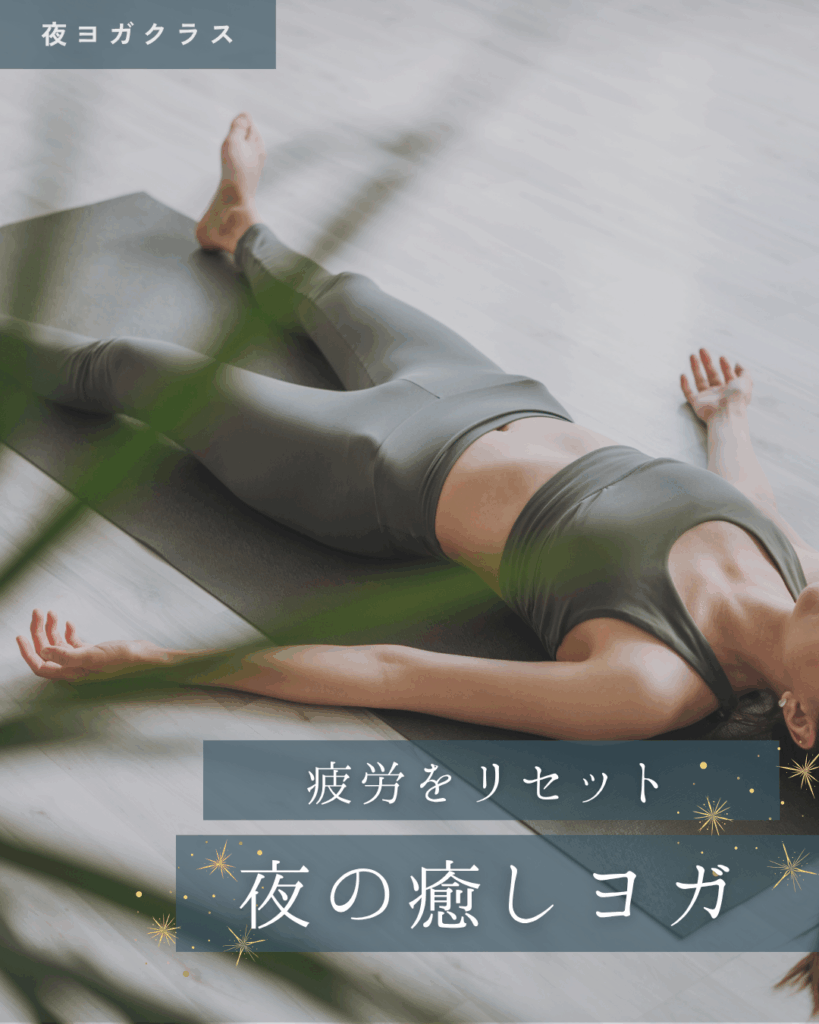 深い呼吸とやさしいストレッチの動きで心と体を整える、リラックスに特化したおやすみ前の夜ヨガクラスです。